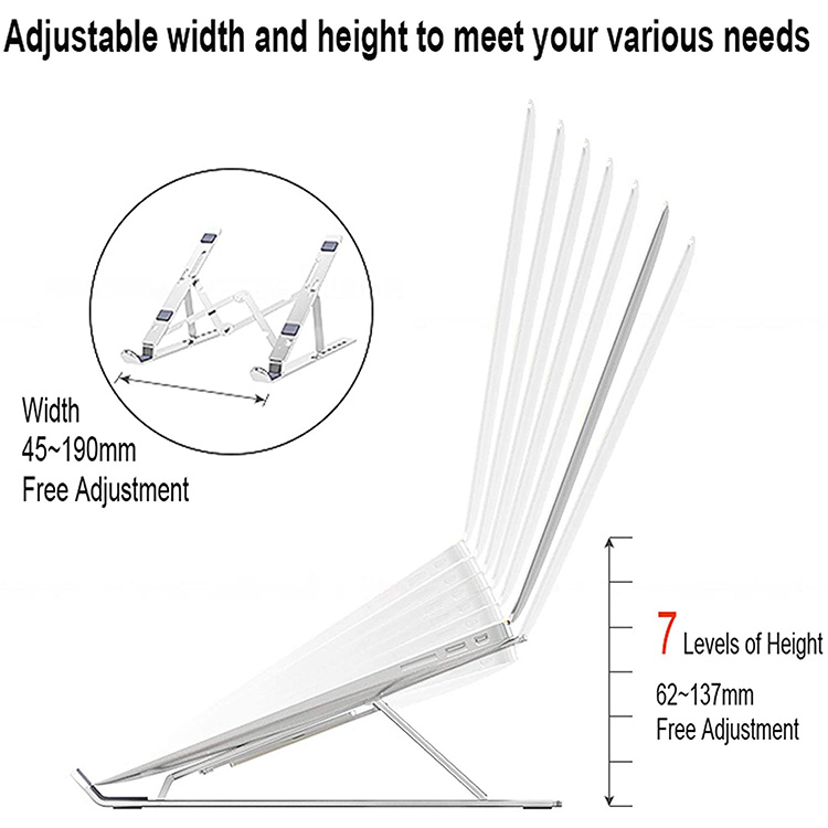 Ως αξιόπιστος κατασκευαστής, παρουσιάζουμε με περηφάνια τη ρυθμιζόμενη βάση φορητού υπολογιστή πολλαπλών θέσεων πτυσσόμενη βάση αλουμινίου για υπολογιστή Bohong, μια υψηλής ποιότητας και ευέλικτη λύση που έχει σχεδιαστεί για να καλύψει τις ανάγκες σας. Αυτή η βάση προσφέρει επτά ρυθμιζόμενες ρυθμίσεις ύψους, επιτρέποντάς σας να την προσαρμόσετε στην προτιμώμενη γωνία και ύψος λειτουργίας, προωθώντας την άνεση και μειώνοντας την ενόχληση στον αυχένα, τους ώμους και τη σπονδυλική στήλη με τον εργονομικό σχεδιασμό της.